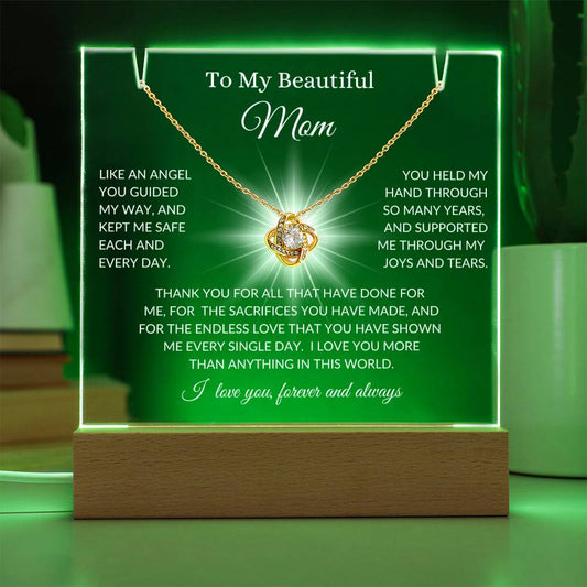 "To My Mom" Illuminated Keepsake & Forever Love Knot Necklace Gift